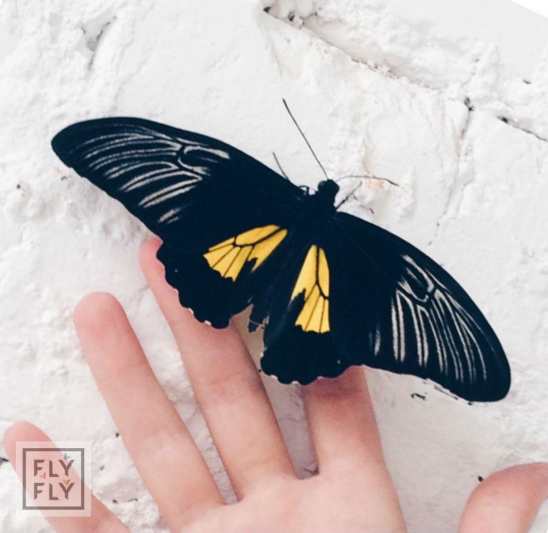 Невероятная бабочка с яркими желтыми пятнами на насыщенно черных крыльях.