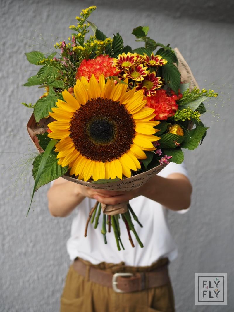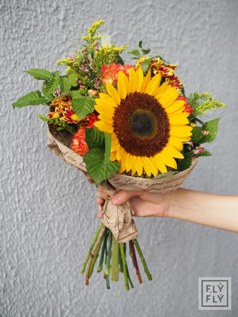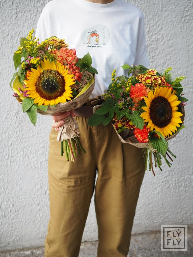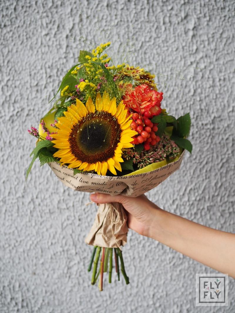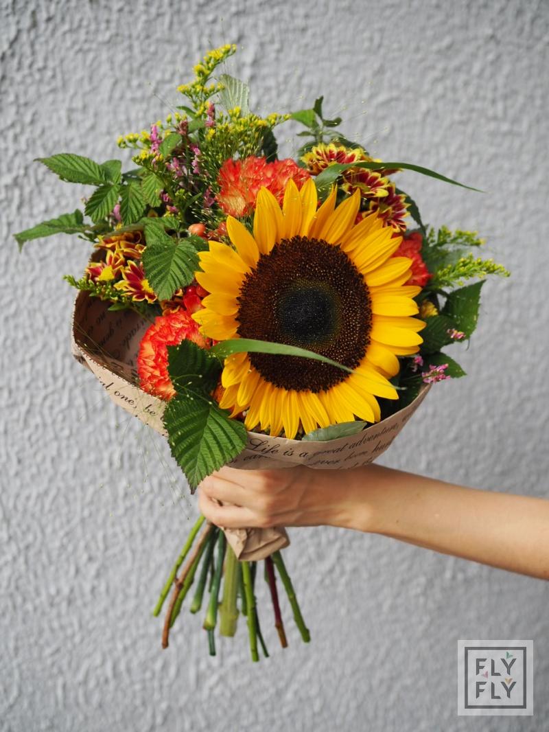 Букет представлен в двух размерах. Диаметр букета размера S - около 22см, M - около 30см.